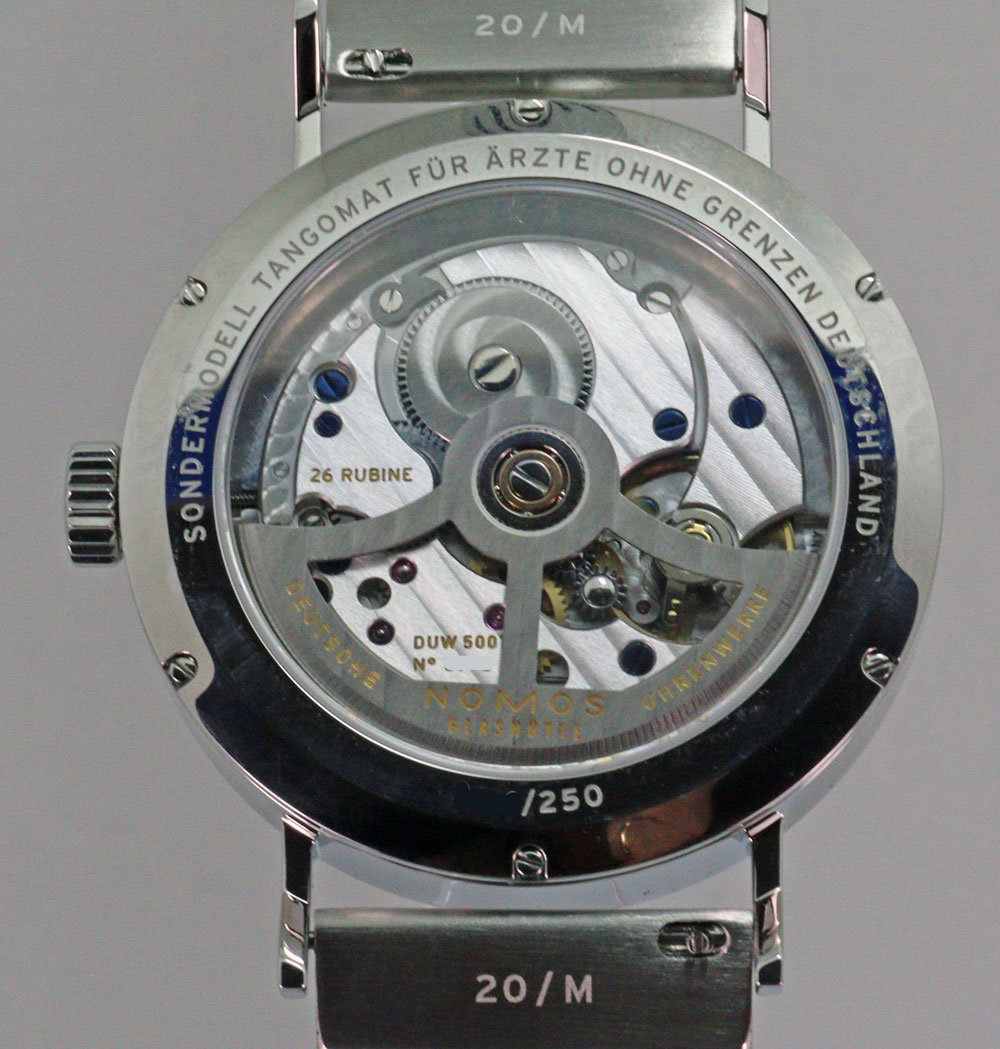 NOMOS Glashütte fördert in einer neuen Sonderedition zum Wohle von Ärzten ohne Grenzen wieder die Arbeit der mit dem Nobelpreis prämierten Entwicklungsorganisation. Zum ersten Mal gibt es ab sofort den NOMOS-Bestseller Tangomat for Doctors Without Borders, eine automatische Uhr mit gut 38 Millimetern Durchmesser. Weltweit ist das Modell auf 250 Stück limitiert; von jedem verkauften Modell gehen 250 Euro direkt in die Nothilfe.