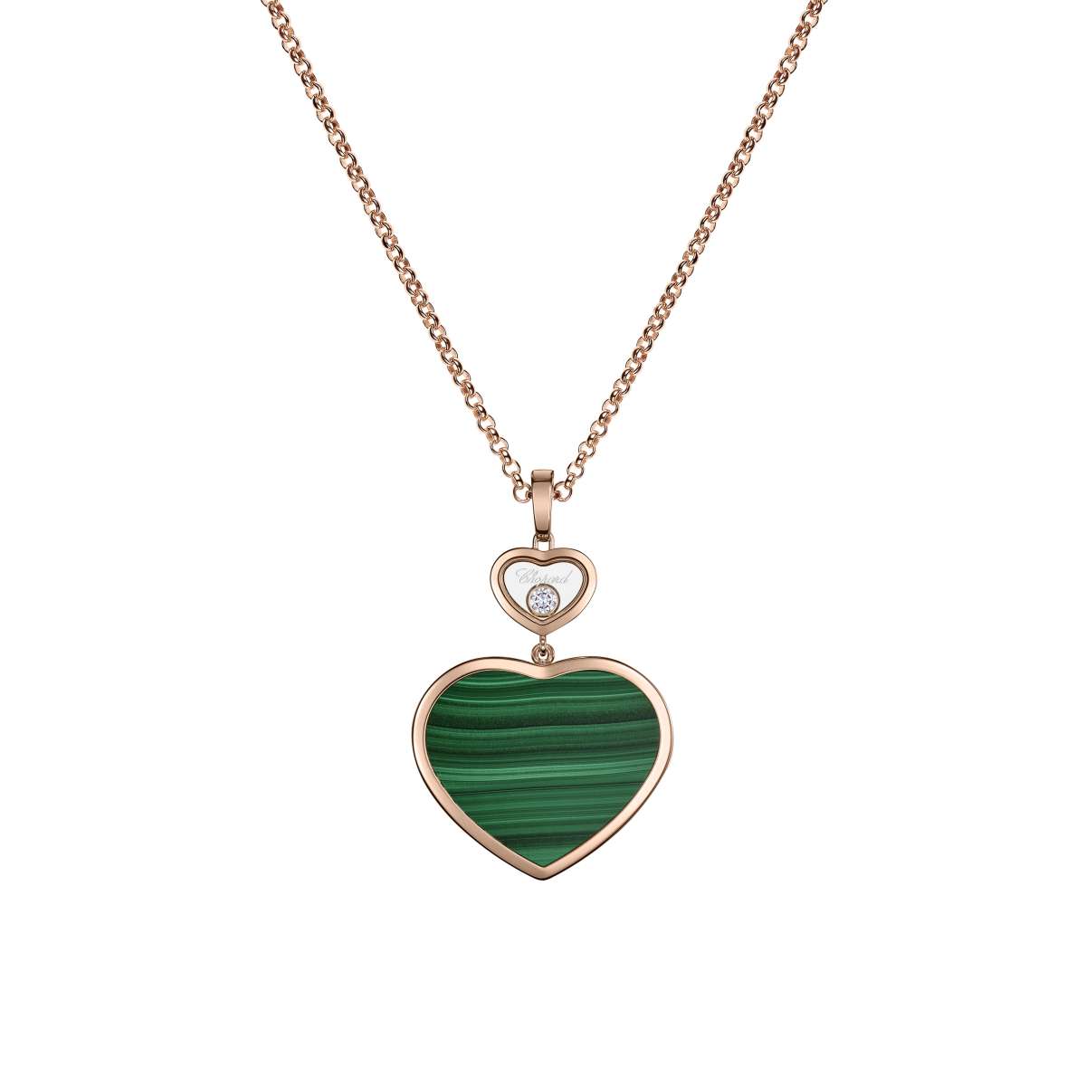 18 Karat ethischem Roségold gefertigt. Chopard verwendet ausschließlich ethisches Gold, was das Engagement der Marke für Nachhaltigkeit unterstreicht. Das Design besteht aus zwei elegant miteinander verbundenen Herzen: