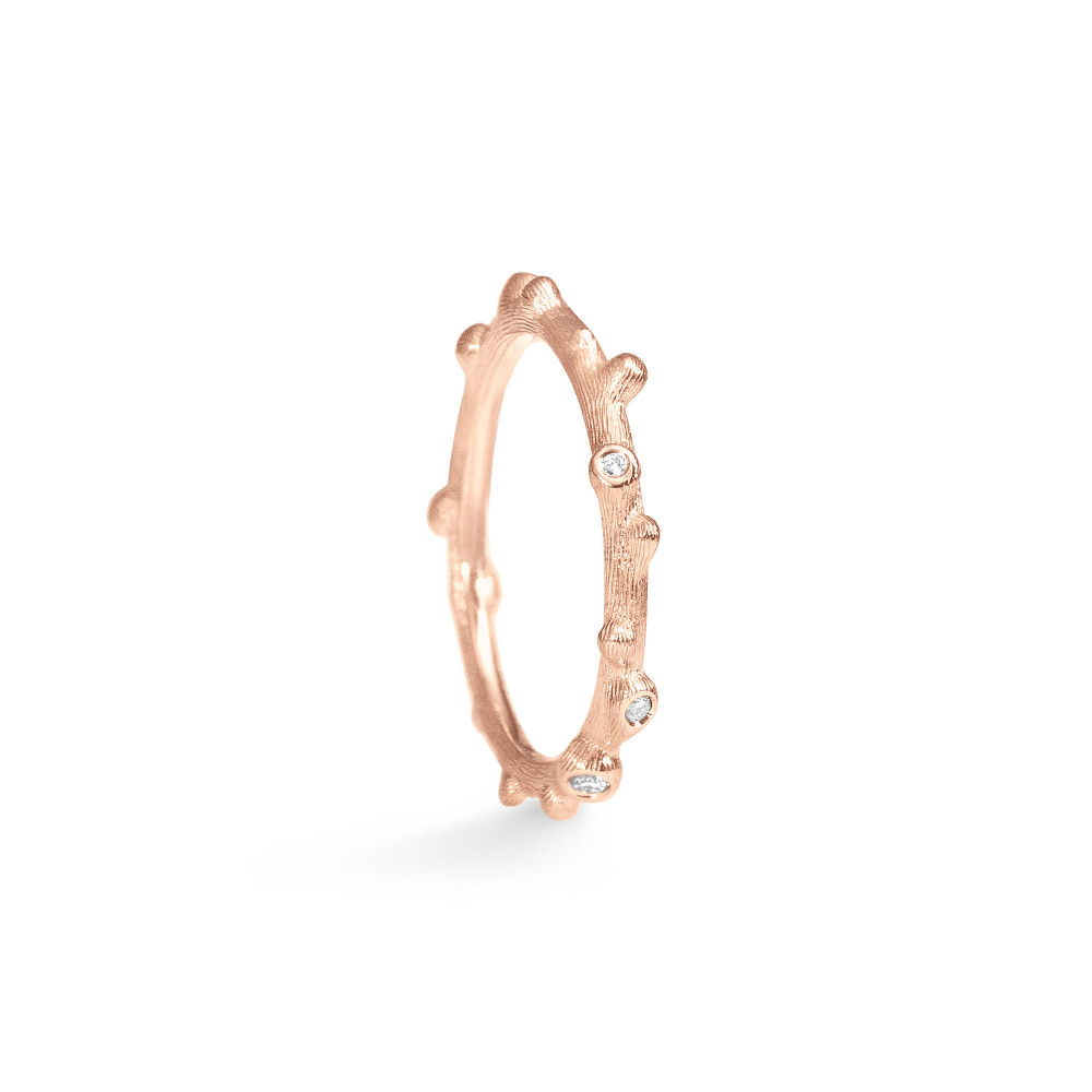 Ref. A2691-701 - Der von Charlotte Lynggaard entworfene Nature ring ist aus 750/- Roségold mit 5 Diamanten in Zargenfassung von insgesamt 0,04 carat TW. VS. gefertigt. Die Goldoberfläche ist von Goldschmiedemeistern von Hand geformt und satiniert. Teil der Nature Collection.