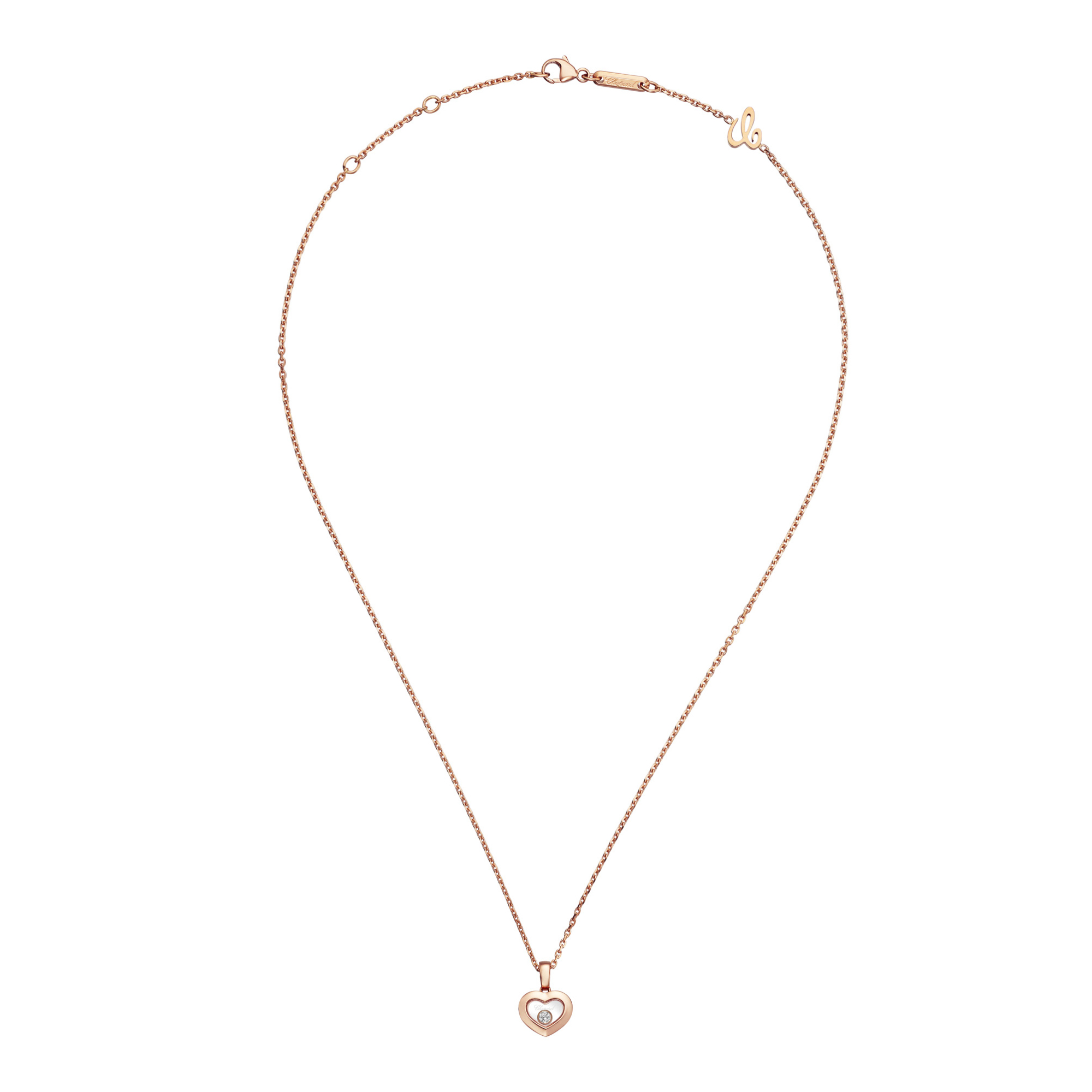 Verleihen Sie jedem Moment Glanz: Diese edle Halskette aus 18 Karat Roségold trägt einen frei beweglichen Brillanten (0,05 ct) im Herzanhänger – ein lebendiges Symbol für Liebe, Licht und Leichtigkeit. Der Diamant tanzt zwischen zwei Saphirgläsern und reflektiert das Licht bei jeder Bewegung. Elegant, feminin, einzigartig – ein Chopard-Klassiker, der nie aus der Mode kommt.