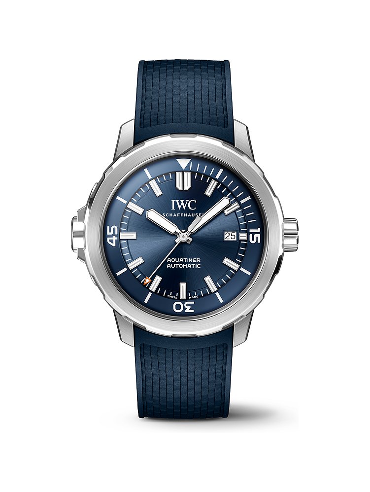 Hier trifft amerikanischer Pioniergeist auf Schweizer Tradition: Bei der International Watch Company – kurz IWC – werden bereits seit 1868 moderne Uhrwerke von höchster Qualität und Güte hergestellt. Seit vier Generationen verbindet die Manufaktur in Schaffhausen Innovationskraft mit Tradition – ganz gleich, ob es um robuste Luxusuhren für den Alltag, um professionelle Sportuhren oder um feinste Haute Horlogerie geht. Für Herren, die in Sachen Stil und Qualität keine Abstriche machen möchten, ist der IWC Schaffhausen Aquatimer Automatic die optimale Wahl. Diese Sportuhr kombiniert ein robustes Edelstahlgehäuse mit einem dynamischen Kautschukband. Dieser IWC Schaffhausen hat ein Gehäuse mit einem Durchmesser von 42 mm und einer Gehäusedicke von 14,1 mm - trotz dieser eher auffälligen Maße passt sie dennoch zu vielen Handgelenken. Ein ausdrucksstarker und moderner Look entsteht durch das gebürstete Finish, die Lünette ergänzt sich harmonisch dazu. Die Markierungen und Leuchtindizes auf dem Ziffernblatt in Blau sorgen für gute Ablesbarkeit, auch die Zeiger lassen sich darauf gut erkennen. Funktional und praktisch: Auch eine Datumsanzeige ist vorhanden. Das verwendete Saphirglas ist durch seine Härte besonders widerstandsfähig gegen Kratzer und damit auch sehr langlebig. Das verbaute Swiss Made-Automatikwerk zieht sich durch Bewegung selbst auf. Mit einer Gangreserve von beeindruckenden 120 Stunden kann die Uhr mehrere Tage lang ungetragen bleiben, ohne neu gestellt werden zu müssen. Die Uhr sitzt dank des Kautschukbands in klassischem Blau und der Dornschließe besonders sicher und bequem. In Summe also ein IWC Schaffhausen wie sie im Buche steht und auch in etlichen Jahren noch für Begeisterung sorgt.