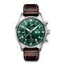 Eine neue ultimative Sportuhr: Nach der Spitfire ergänzt der Pilot"s Watch Chronograph Comparison (Ref. IW378005) die Kollektion von IWC Schaffhausen. Im Design eines Cockpit-Instruments präsentiert der Chronograph in dem 43-Millimeter-Edelstahlgehäuse präzise und übersichtlich die Funktionen des automatischen IWC-Manufakturkalibers 69385 auf dem grünen Zifferblatt mit rhodinierten Zeigern: Stoppuhr, Datum- und Wochentagsanzeige sowie die Kleine Sekunde mit Stoppvorrichtung. Dank des IWC-Armband-Schnellwechselsystems lässt sich das braune Kalbslederarmband einfach wechseln.