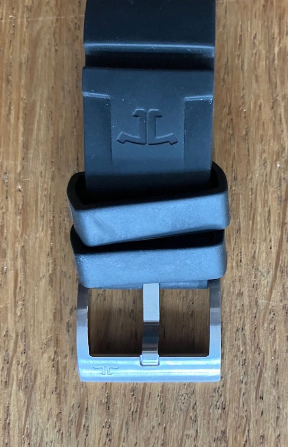- Manufakturkaliber JLC 751D mit Chronofunktion: Im Inneren schlägt das präzise automatische Chronographenwerk JLC 751D. Dieses Hochleistungskaliber mit 41 Steinen, 65 Stunden Gangreserve und 272 Einzelteilen ist ein Beweis für die technische Kompetenz von Jaeger-LeCoultre. Es bietet nicht nur eine präzise Stoppfunktion, sondern auch die Anzeige von Stunde, Minute und Sekunde. Ein besonderes Feature ist das Fenster für die Kompressionsanzeige, das eine einfache Kontrolle der Uhrfunktionen ermöglicht.