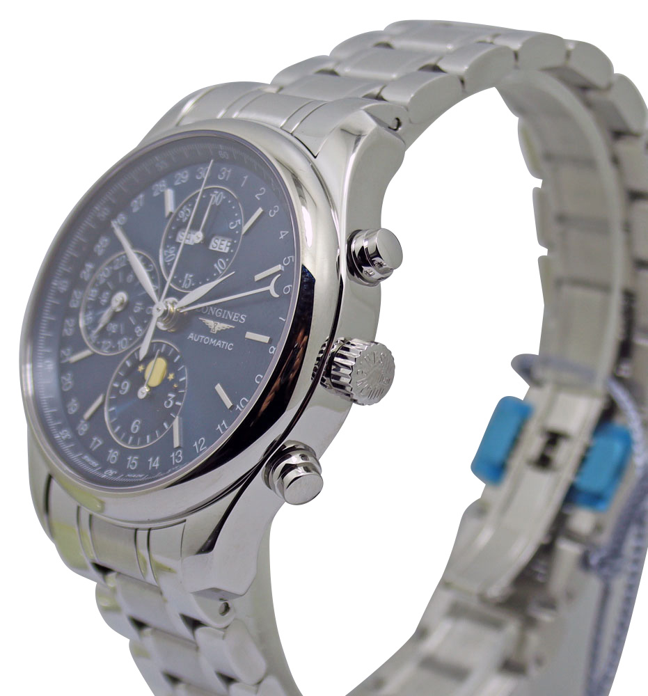 Longines Kaliber L678 (basierend auf dem Kaliber Valjoux 7751), schlägt mit 28.800 Umdrehungen pro Stunde, enthält 25 Juwelen und hat eine ungefähre Gangreserve von 46-48 Stunden.