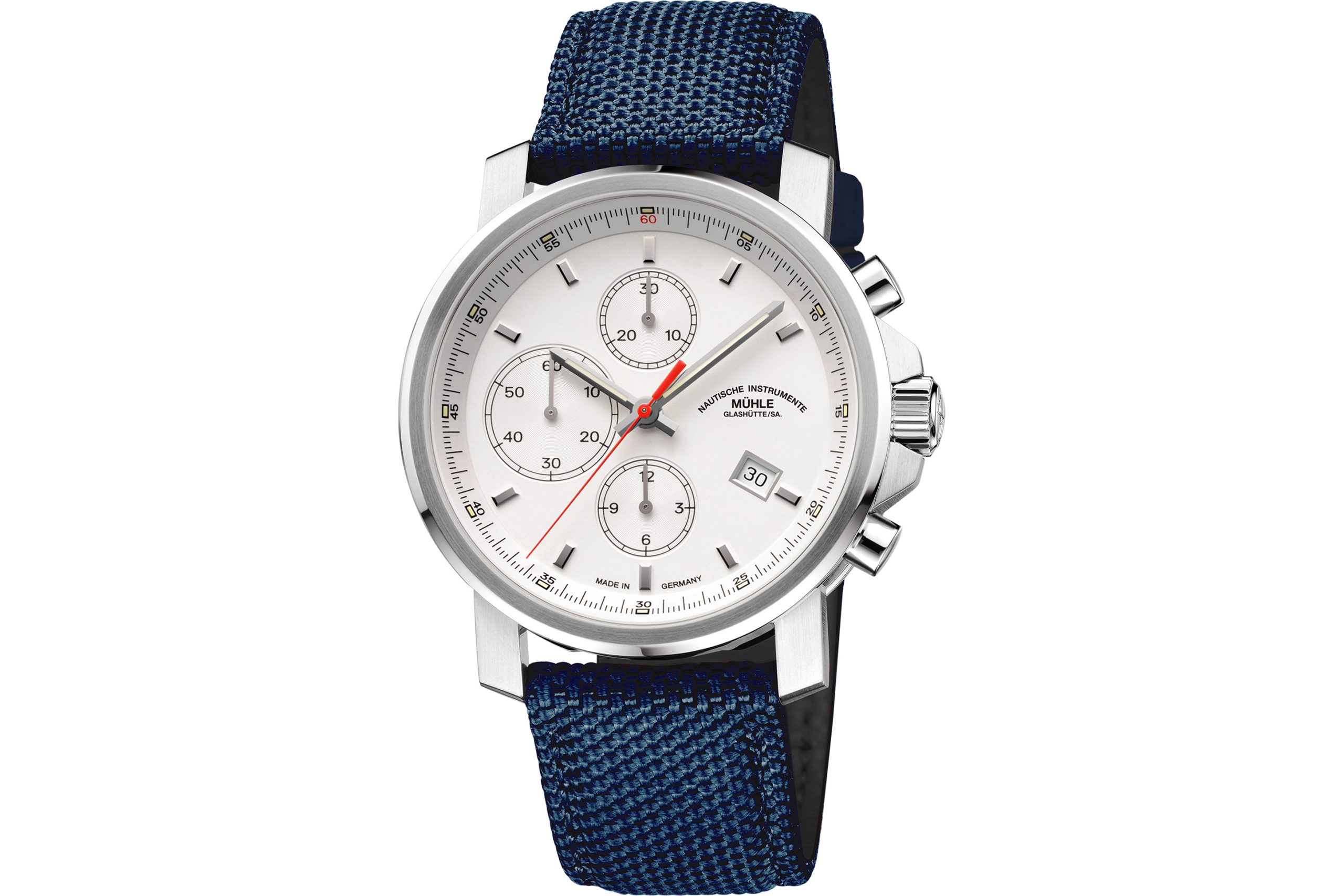 Die Mühle Glashütte 29er Chronograph Ref: M1‑25‑41‑CB‑I besticht durch ihr sportlich‑elegantes Edelstahlgehäuse mit einem Durchmesser von 42,4 mm und einer Höhe von 14,2 mm, das Robustheit und Präzision vereint. Das strahlend weiße Zifferblatt sorgt für hervorragende Lesbarkeit und wird durch ein kratzfestes, entspiegeltes Saphirglas geschützt. Stunden‑, Minuten‑ und Stoppzeiger sowie applizierte Indizes sind mit Super‑LumiNova beschichtet, was eine perfekte Ablesbarkeit bei Tag und Nacht garantiert. Die verschraubte Krone unterstreicht nicht nur den dynamischen Look dieser Uhr, sondern erhöht auch ihre Zuverlässigkeit im Alltag.