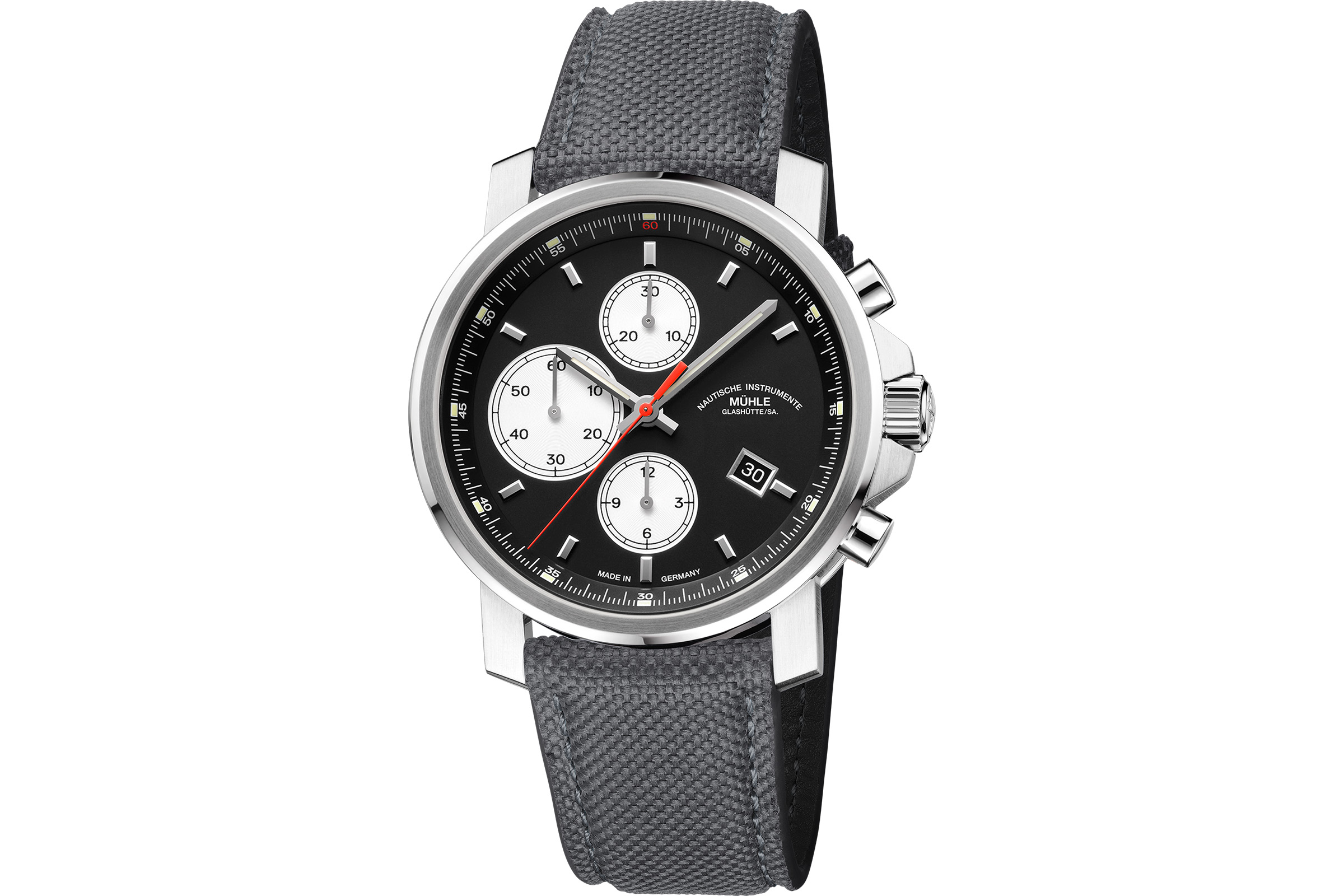 Die Mühle Glashütte 29er Chronograph Ref: M1-25-43-CB-V besticht durch ihr sportlich‑elegantes Edelstahlgehäuse mit einem Durchmesser von 42,4 mm und einer Höhe von 14,2 mm, das Robustheit und Präzision vereint. Das schwarze Zifferblatt sorgt für hervorragende Lesbarkeit und wird durch ein kratzfestes, entspiegeltes Saphirglas geschützt. Stunden‑, Minuten‑ und Stoppzeiger sowie applizierte Indizes sind mit Super‑LumiNova beschichtet, was eine perfekte Ablesbarkeit bei Tag und Nacht garantiert. Die verschraubte Krone unterstreicht nicht nur den dynamischen Look dieser Uhr, sondern erhöht auch ihre Zuverlässigkeit im Alltag.