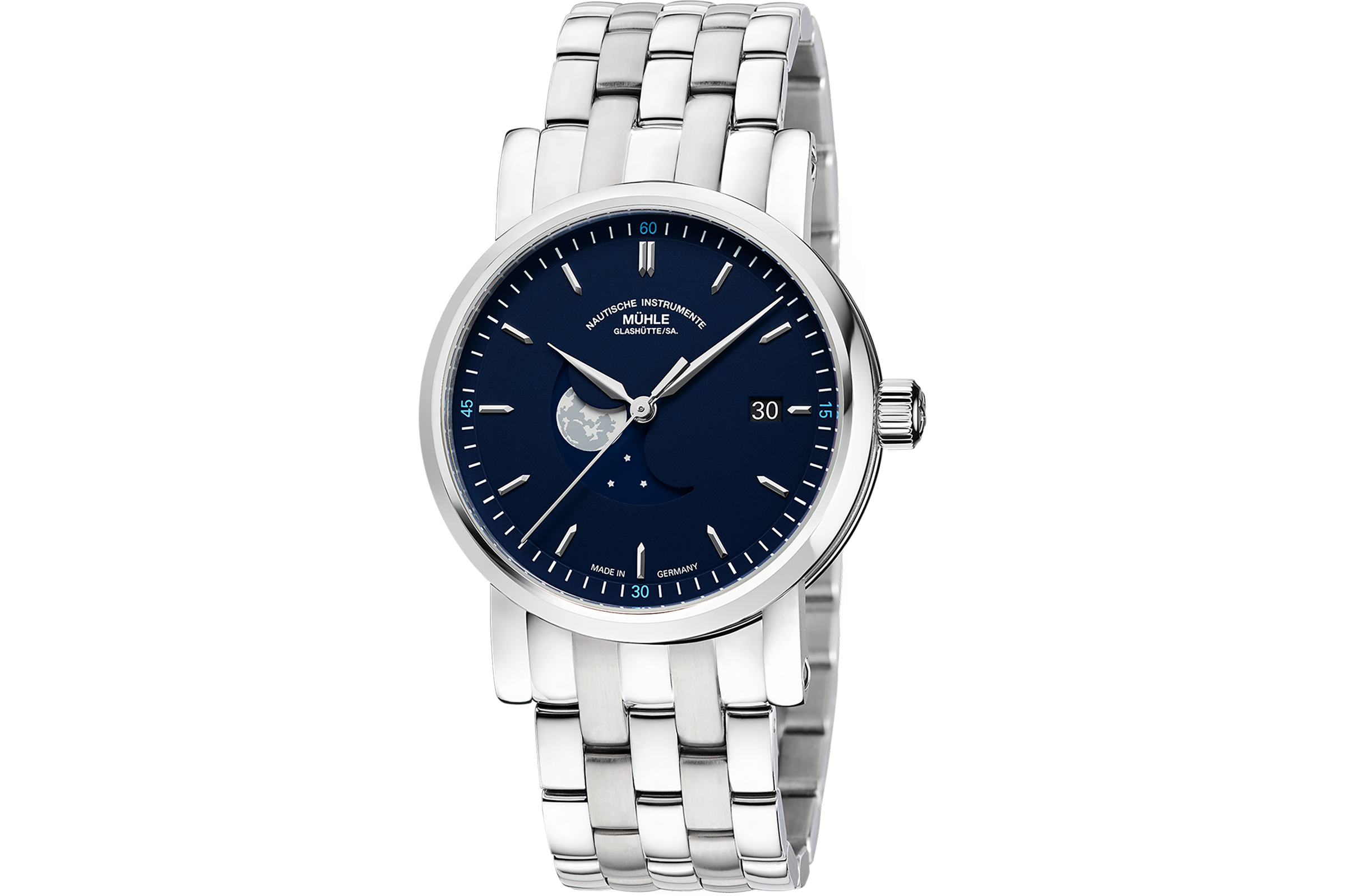 Mühle Glashütte Teutonia IV BlueMoon (Ref. M1-44-62-MB) – Eleganter maritimer Klassiker mit Mondphasenanzeige und massivem Armband