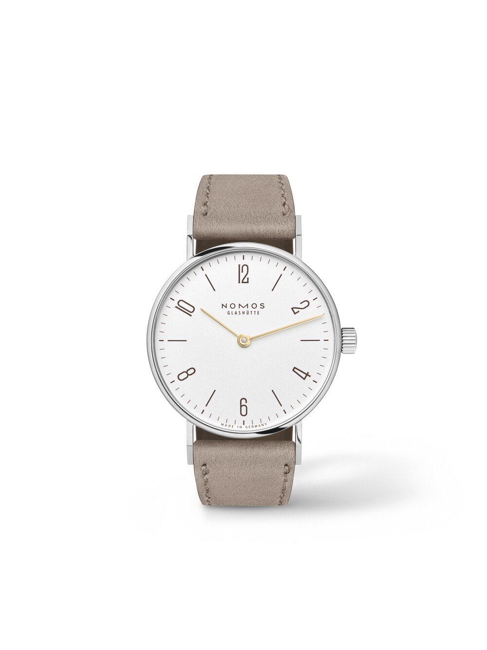 Die klassische NOMOS-Tangente in eher kleiner - und noch schlanker. Die Ausführung ohne den kleinen Sekundenzeiger: Die Tangente 33 Duo ist insbesondere für feinere Handgelenke geeignet. Und passend zu jedem Schmuckstück: Das Gehäuse ist aus Edelstahl, die beiden Zeiger glänzen in Gold. In seinem Innenleben tickt das Werk Alpha.2: ein bewährtes und sehr exaktes Handaufzugskaliber von NOMOS Glashütte, für die Duo völlig neu definiert.