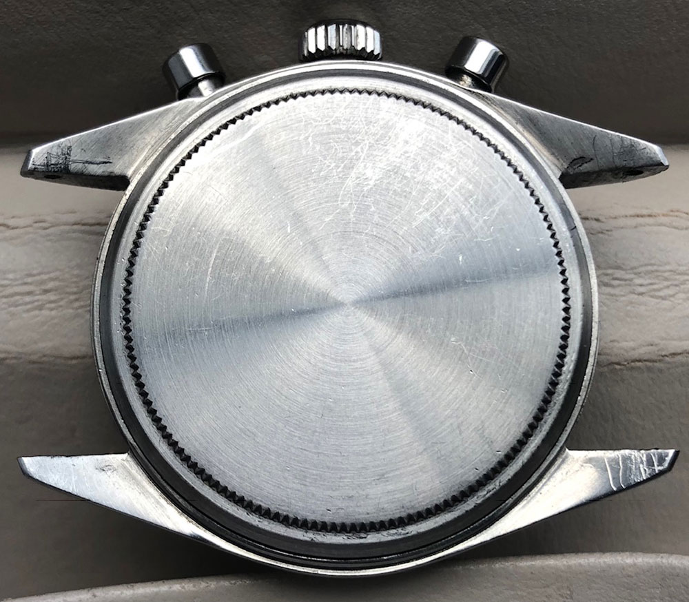 Sehr guter originaler Gesamtzustand. Das schwarze Zifferblatt hat einen kleinen Fleck im Subdial kleine Sekunde.