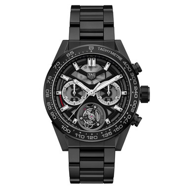 Schwarzes Keramikgehäuse mit schwarzem Keramikarmband. Feste schwarze Keramiklünette mit Tachymeter-Markierungen. Schwarzes Zifferblatt mit schwarzen Leuchtzeigern und Index-Stundenmarkierungen. Minutenmarkierungen am äußeren Rand. Zifferblatt Typ: Analog. Nachleuchtende Zeiger und Markierungen. Datumsanzeige zwischen der 4 und 5 Uhr Position. Chronograph - Anzeige von drei Unterzifferblättern: 60 Sekunden, 30 Minuten und 12 Stunden. Automatikwerk Tag Heuer Calibre 01 mit 50 Stunden Gangreserve. Kratzfestes Saphirglas. Krone ziehen/drücken. Massiver Gehäuseboden. Runde Gehäuseform, Gehäusegröße: 45 mm, Gehäusedicke: 16,5 mm. Breite des Armbandes: 20 mm. Faltschließe mit Drückerauslösung. Wasserdicht bis 100 Meter . Funktionen: Chronograph, Tachymeter, Säulenrad, Datum, Stunde, Minute, kleine Sekunde. Tag Heuer Carrera Automatik-Chronograph Herrenuhr CAR2A91.BH0742