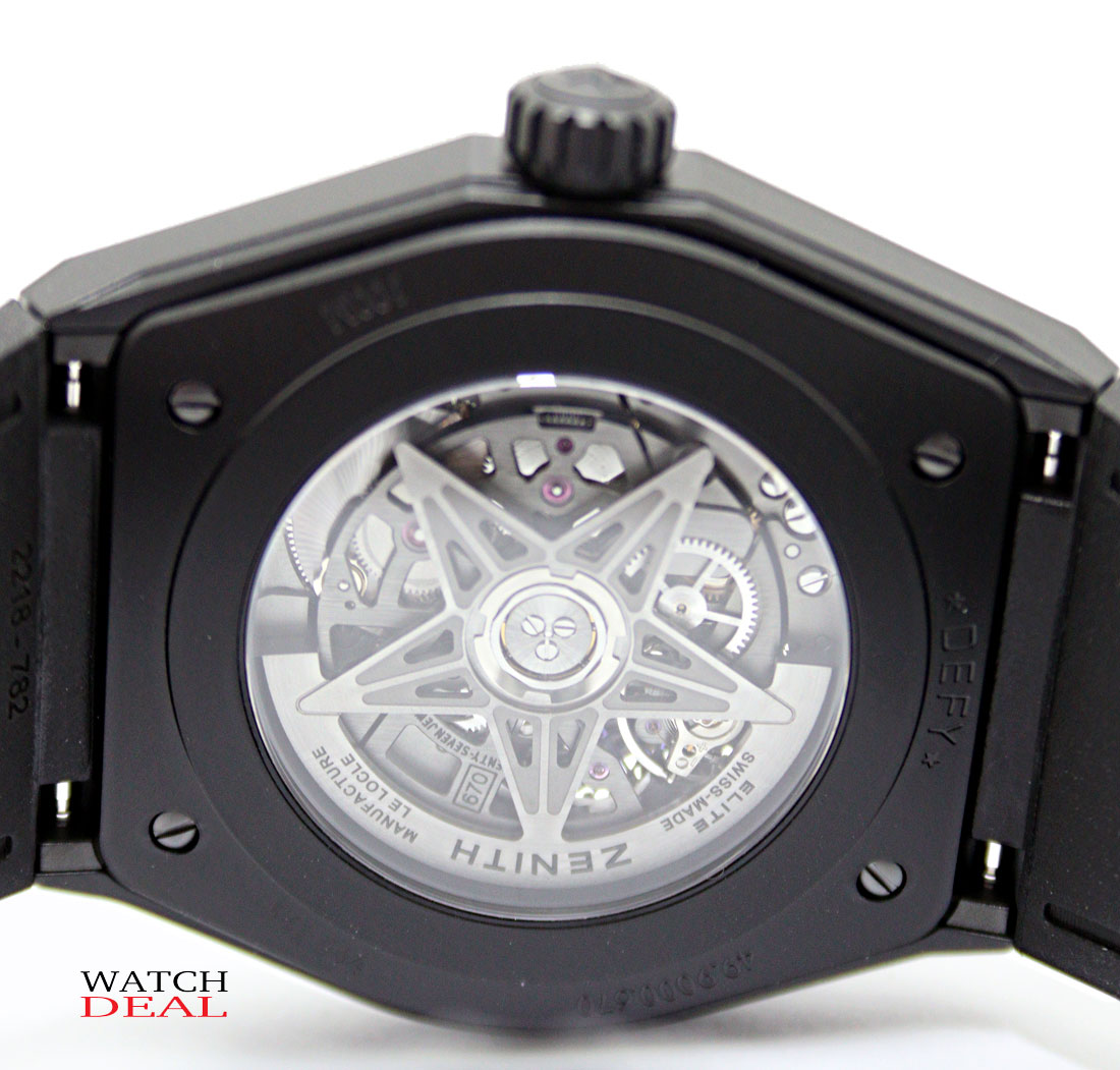 Zenith Elite Kaliber 670SK, schlägt mit 28.800 Vph, 187 Komponenten und hat eine Gangreserve von ca. 50 Stunden.