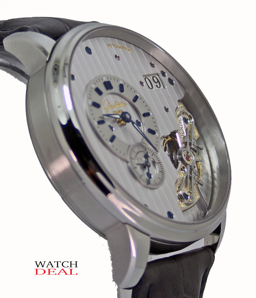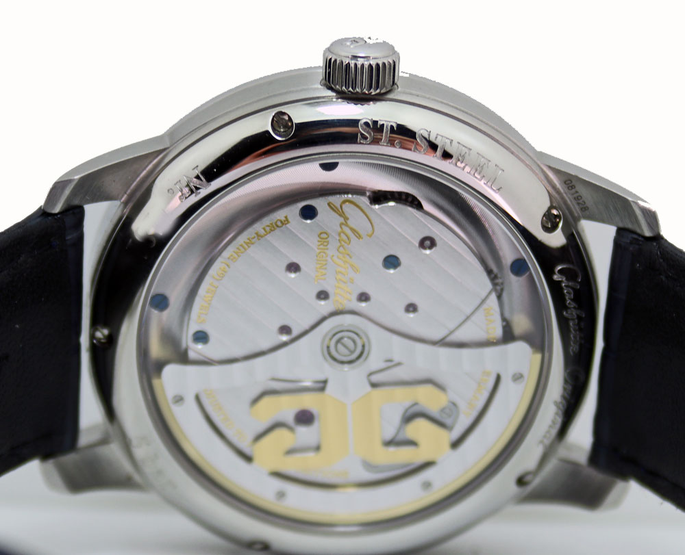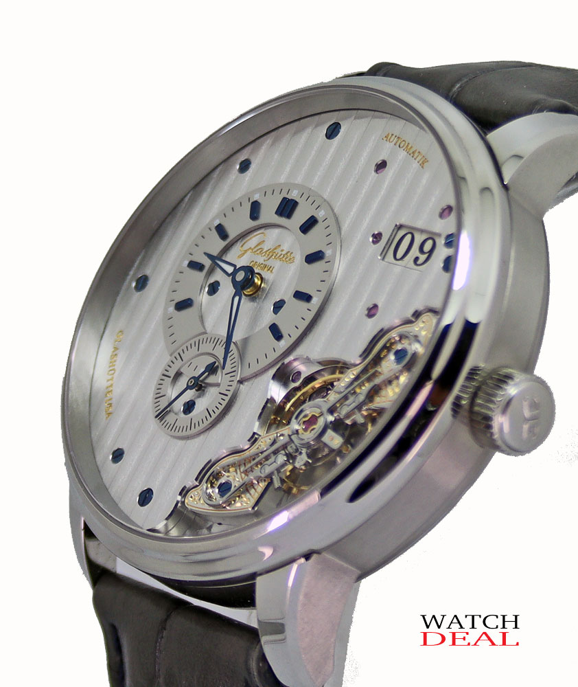 Glashutte Original Caliber 91-02, beats at 28,800 vph, contains 49 Jewels & has an approximate power reserve of 42 hours.