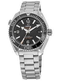 Stainless steel case with a stainless steel bracelet. Uni-directional rotating stainless steel bezel with a black ceramic top ring. Black dial with luminous silver-tone hands and index hour markers. Arabic numerals mark the 6, 9 and 12 o'clock positions. Minute markers around the outer rim. Dial Type: Analog. Luminescent hands and markers. Date display at the 3 o'clock position. Omega calibre 8900 automatic movement with a 60-hour power reserve. Scratch resistant sapphire crystal. Screw down crown. Transparent case back. Case size: 43.5 mm. Case thickness: 16.04 mm. Round case shape. Band width: 21 mm. Fold over clasp. Water resistant at 600 meters / 2000 feet. Functions: date, hour, minute, second. Luxury watch style. Watch label: Swiss Made. Omega Seamaster Planet Ocean Automatic Mens Watch 215.30.44.21.01.001.