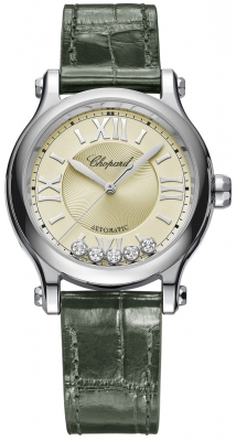 The Happy Sport collection embodies Chopard's creativity and daring spirit. The playful, freely moving gemstones dancing between two sapphire crystal discs have been inspiring the imagination since 1993. That year, Chopard was the first company to combine stainless steel and diamonds. Thanks to its in-house watchmaking expertise, Chopard was able to equip the Happy Sport 33 mm with a mechanical automatic movement specially developed for ladies' watch cases. Little Diamonds Do Great Things