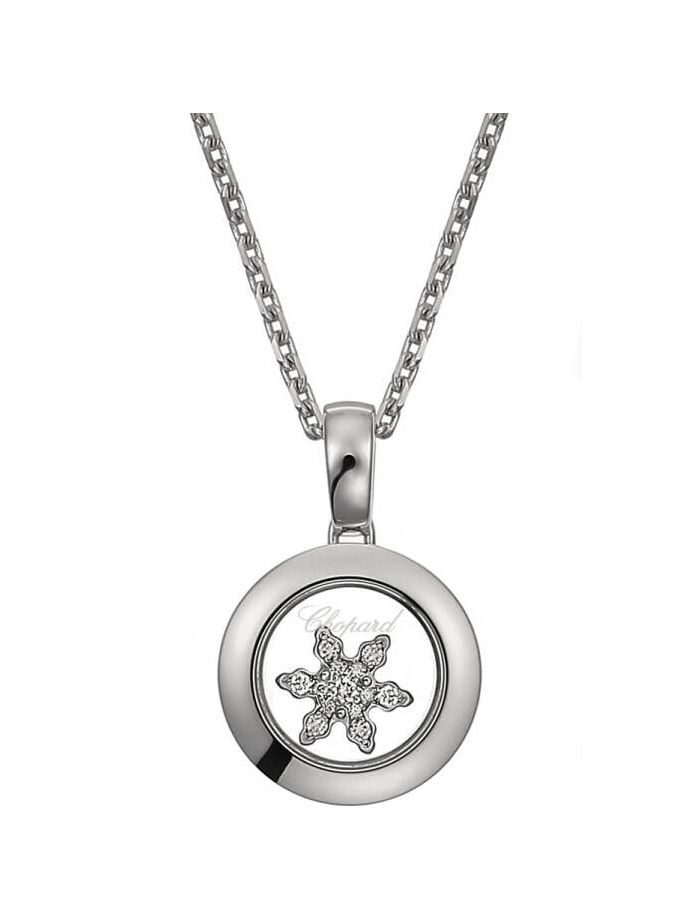 Happy Snowflakes necklace with pendant that embodies Chopard's iconic jewelry collection. This piece of jewelry celebrates the magic of winter through its playful and luxurious design.