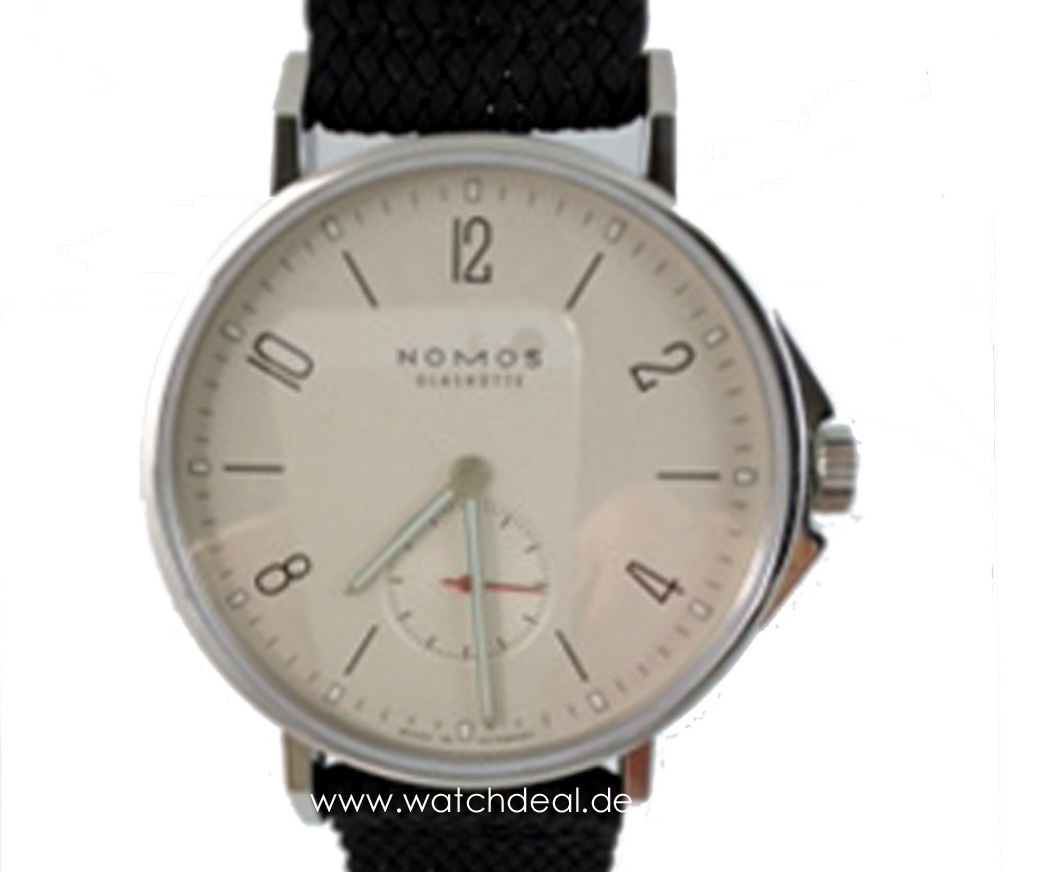 Thanks to the six-fold screwed sapphire crystal back and the screwed crown, the watches of the Ahoy series are water-resistant to 200 meters. Also the blue-black textile strap. The Ahoi has been tested according to NOMOS test specifications, which are based on the diving watch standard DIN 8306.