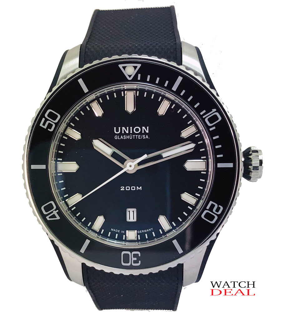 Diver's watch, automatic, calibre UNG-07.S1, 60 hours power reserve, silicon spiral, stainless steel case diameter 45 mm, height 12,1 mm, black dial with indiezes, luminous material Superluminova, date display, scratch resistant unidirectional rotating bezel with sapphire crystal coating and protected luminous material, two changeable straps: brown vintage calfskin strap in addition to the mounted black rubber strap, folding clasp, quick-release spring bars for tool-free replacement, sapphire crystal with anti-reflective coating on both sides, 20 bar water resistant