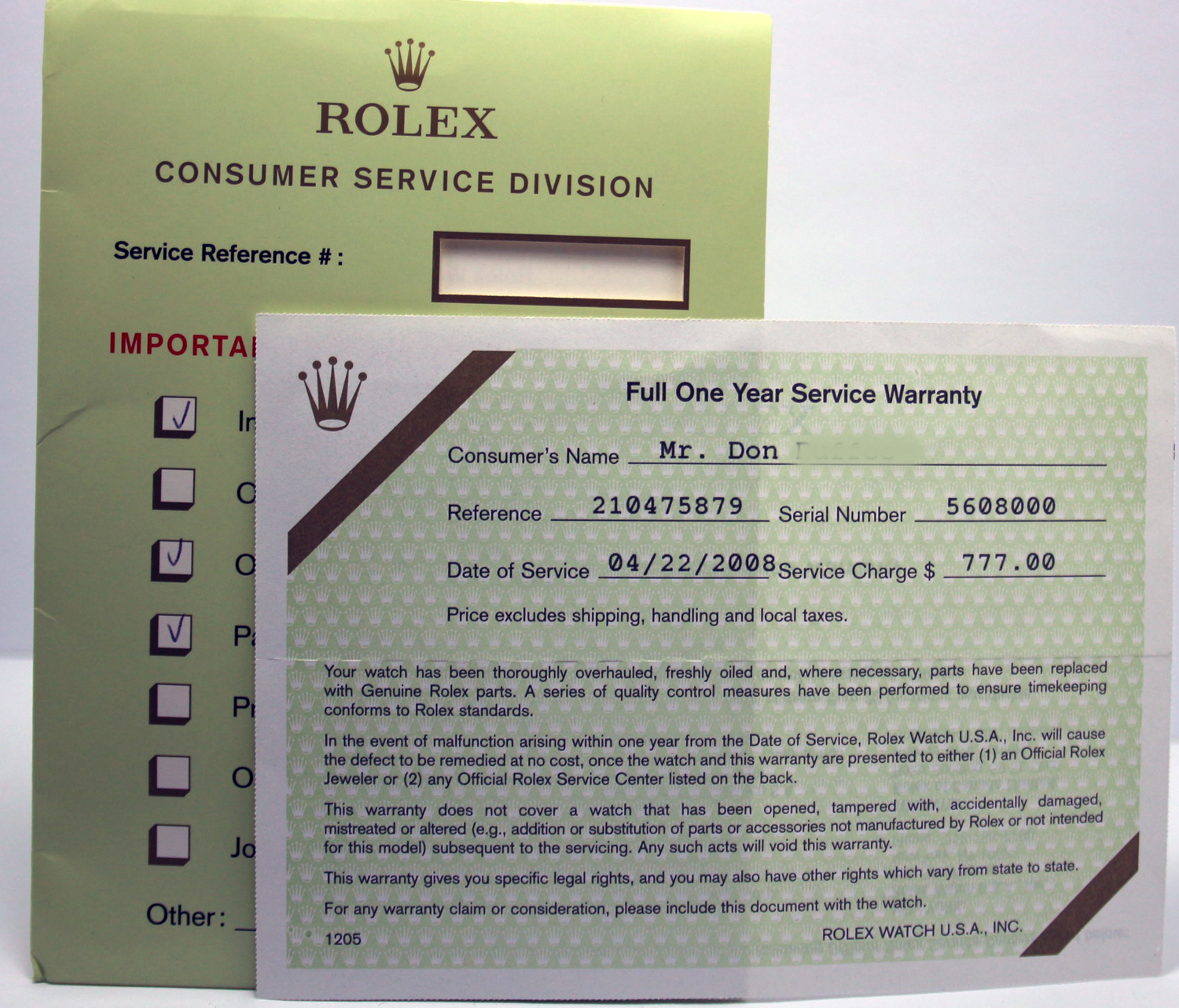 It was serviced by Rolex in 2008 and hasn't been worn since.
