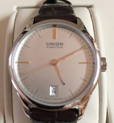 Belisar, Noramis, Viro, 1893, Seris and Sirona. Each series has exceptional models. You will find not only watches with three hands, but also numerous models with practical complications. These include chronograph function, power reserve indicator, large date, moon phase and second time zone. The design of the wristwatches is functional and contemporary, but also includes classic models. 316L stainless steel is the ideal material for the cases, with only a few exceptions using gold. The watches impress with their noble character and high-quality workmanship.In contrast to Glashütte Original, the watchmaking group acquired by the Swatch Group in 2000 relies throughout on the calibres of the movement manufacturer ETA, also part of the Swatch Group, for the manufacture of its watches. They are inexpensive, easy to service and have been tried and tested for decades. However, Union does not only install the plants. In its own production facilities in Glashütte, the individual plants are tested, assembled, finished and regulated. The automatic elevator system - the rotor - even originates entirely from our own production.